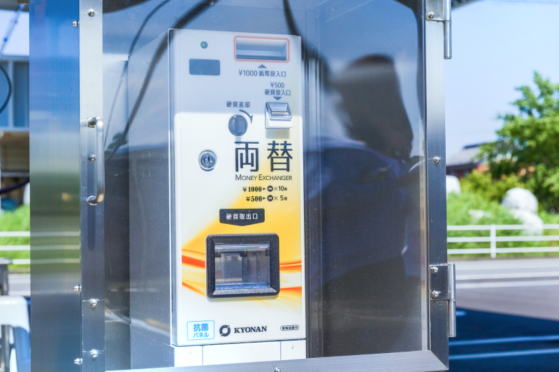 手洗い洗車の拭き上げコーナーに両替機を設置しています。